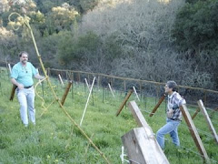 And now that the "Super Bowl" is over ... (Wasn't that a great game, by the way! Great if you were rooting for New Orleans!). Well, now that the "Super Bowl" is over, we are really going to spend a good deal of time on the vines this third year. They now all have well established trunks and we will focusing on pruning, staking, adjusting the trellis system and tying the lateral cordons shoots to the trellis wires. Also, we have to replace about 30 vines that were lost to gophers or watering difficulties or neglected or just plain died! Also, we have to start composting the cuttings! And now I can't blame not getting anything done on football. All I can say is thank goodness for basketball!